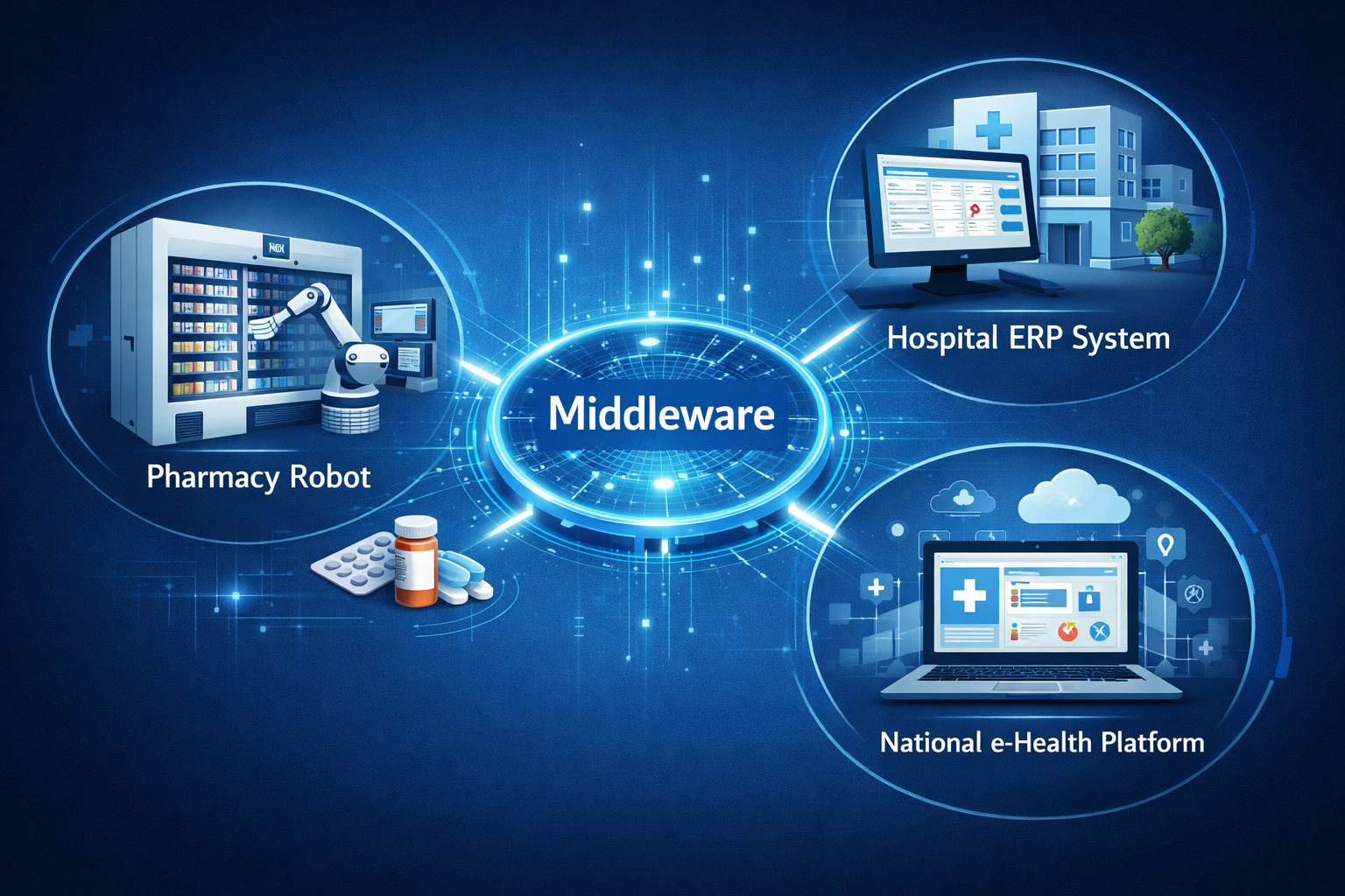 This case study highlights how Software Development Hub designed and delivered a scalable integration framework that connected pharmacy robotics with enterprise systems and a restricted national e-health platform — transforming isolated technologies into a unified operational ecosystem.