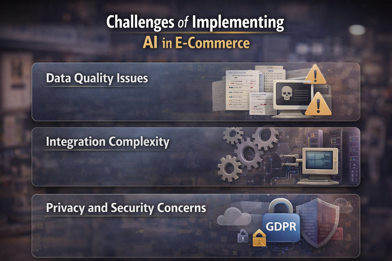 AI systems must integrate seamlessly with existing e-commerce platforms, which can be difficult with legacy infrastructure.