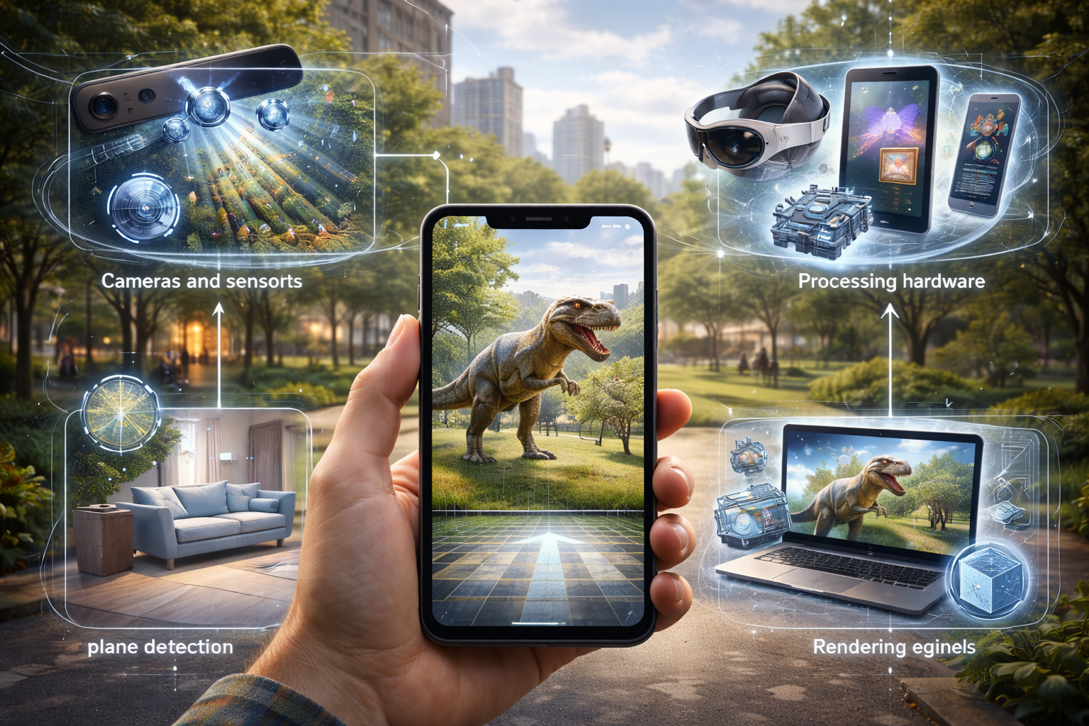 - Rendering engines β Software that draws the augmented objects and blends them with the real view so they appear natural and stable.