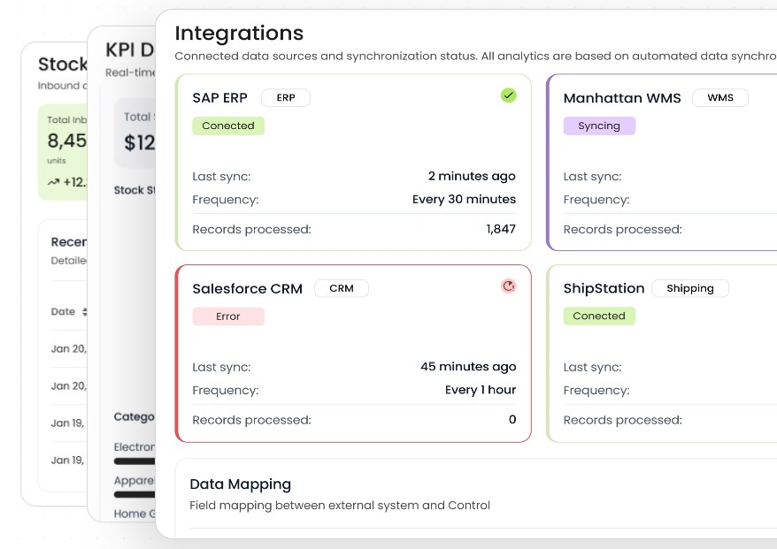At SDH, the Control Tower acts as a central nervous system for logistics, synchronizing WMS, TMS, and ERP platforms into a single source of truth while eliminating manual Excel reporting workflows.