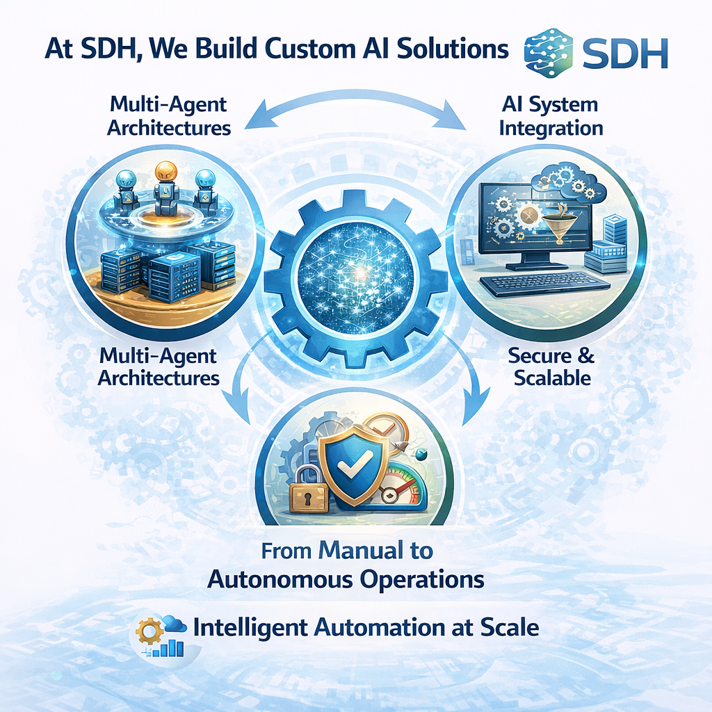 Bei SDH helfen wir Unternehmen dabei, maßgeschneiderte agentische Anwendungen zu entwerfen und zu entwickeln, die auf ihre operativen Abläufe zugeschnitten sind.